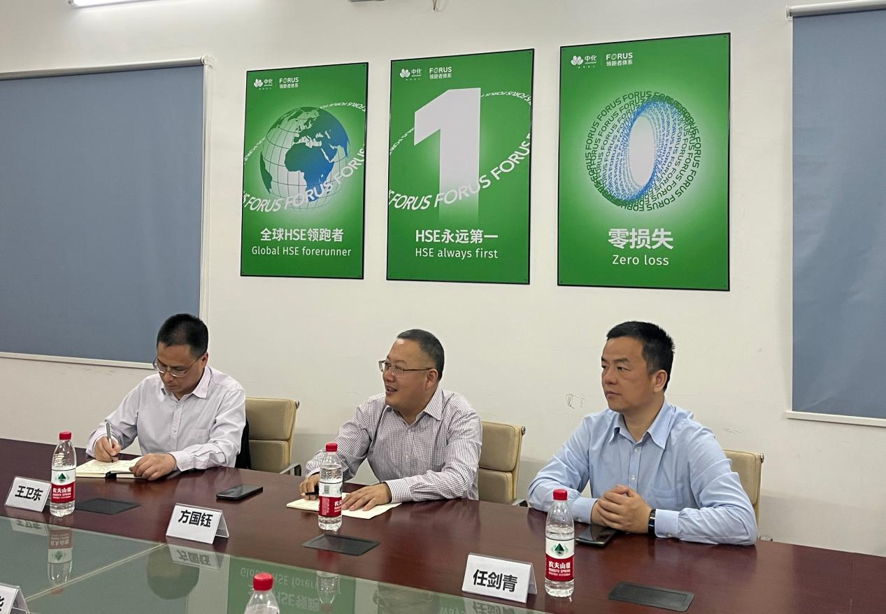 2023年3月21日,化工事业部HSE总监方国钰、HSE部副总经理兼生产安全总监任剑青、安全体系高级经理王卫东一行,莅临广东尊龙z6·官网仓储运输有限公司,检查化工事业部近期部署重点工作的落实情况,指导FORUS体系、24要素体系的建设和推进工作。尊龙z6·官网副总经理、尊龙z6·官网广东总经理叶伟华陪同检查。